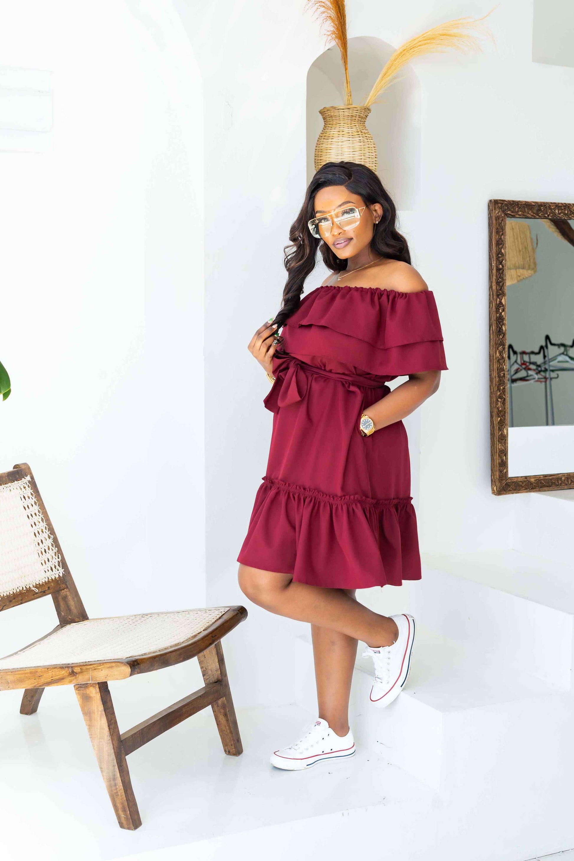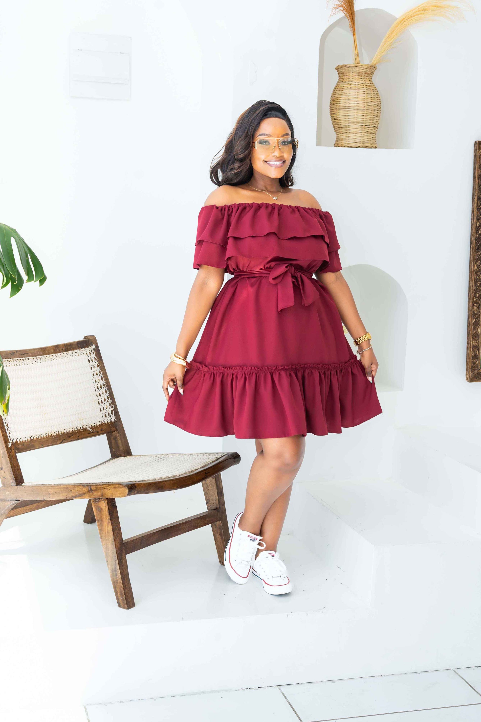 Fun, flirty, and easy to wear. Monaco Mini brings a playful feel with its ruffled details and off-shoulder charm, perfect for laid-back days that still need a cute outfit.